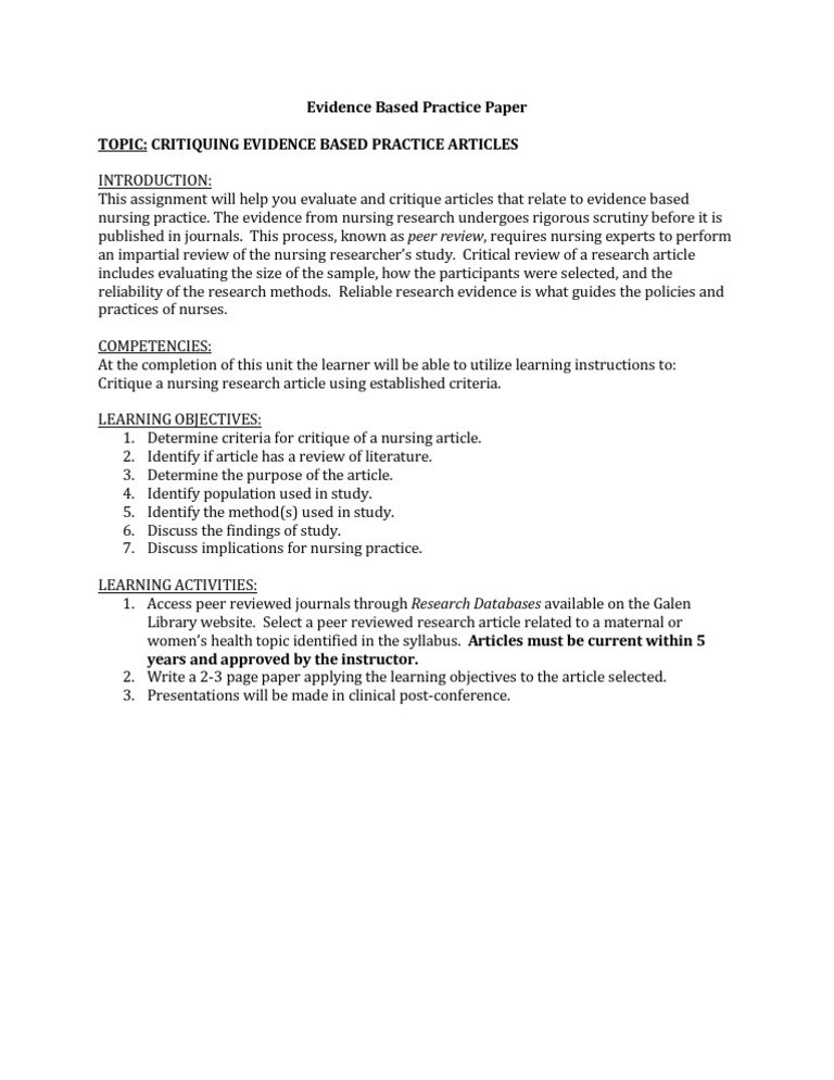 Evidence-based practice EBP is firmly established as an essential component of nursing practice. Despite being present in some form in all nursing roles, its presence is arguably more prominent in evidence based practice essay nursing settings RN, evidence based practice essay. In addition, several managerial tasks and the duty of communicating with clinicians increase the scope of responsibilities. Most of these tasks directly determine patient outcomes depending on the quality of the made decisions.